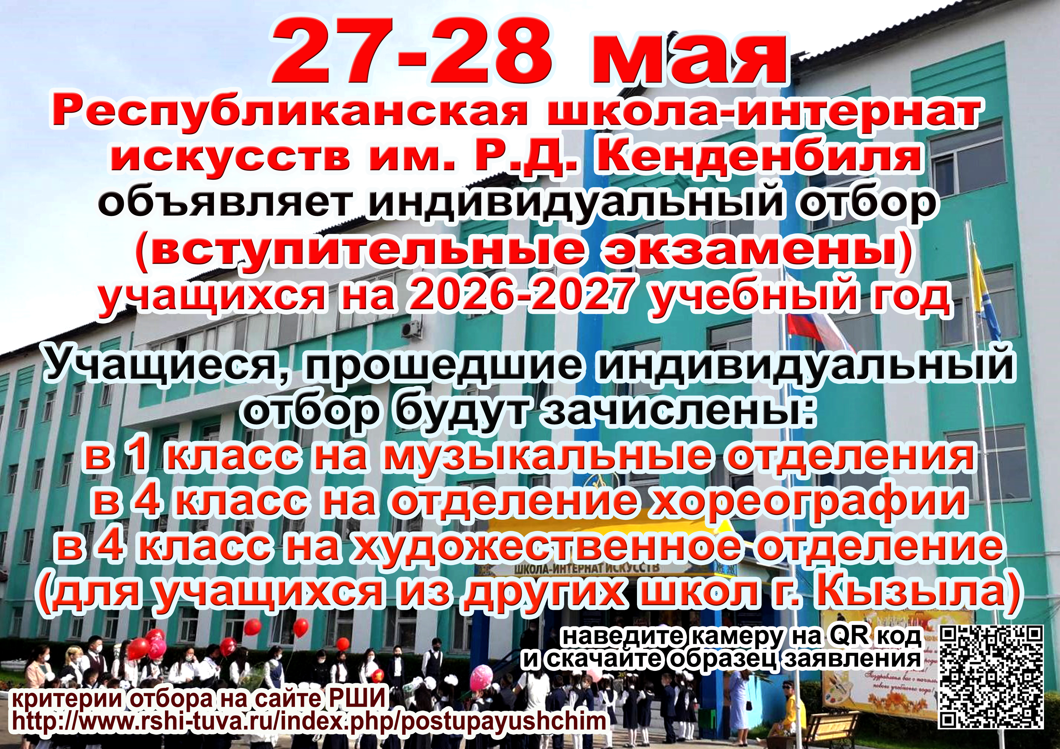 Что необходимо для поступления в нашу школу, критерии отбора, документы вы можете посмотреть на сайте школы, в разделе "Поступающим" rshi-tuva.ru/index.php/...